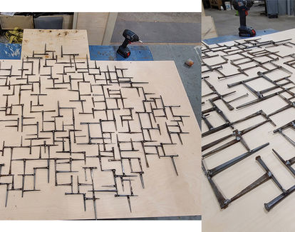 ![]() Bent flat stock steel and laminated plywood |